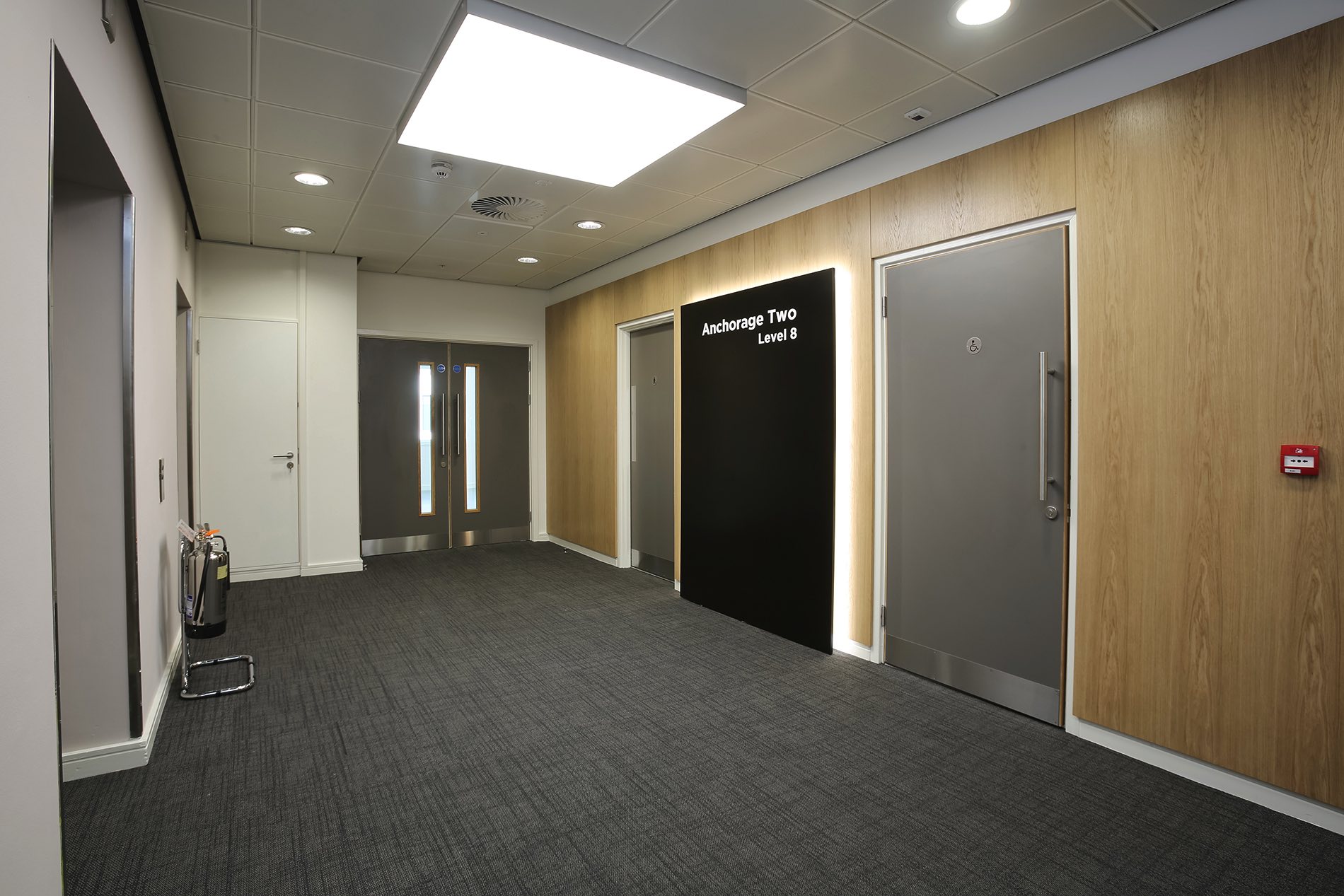 Anchorage Two forms the focal point of Anchorage, housing the on-site retail and leisure facilities. Automatic doors lead into a stunning full height remodelled and refurbished reception / atrium area which provides direct access into the office accommodation via the separate North and South entrance lobby areas. Within each lobby area are 2 new 16 person high speed passenger lifts that serve all upper floors. Male, female and disabled toilet facilities are provided on each floor level and have also recently been refurbished to a superb standard. Anchorage 2 provides large single floor plates of 12,494 sq ft.